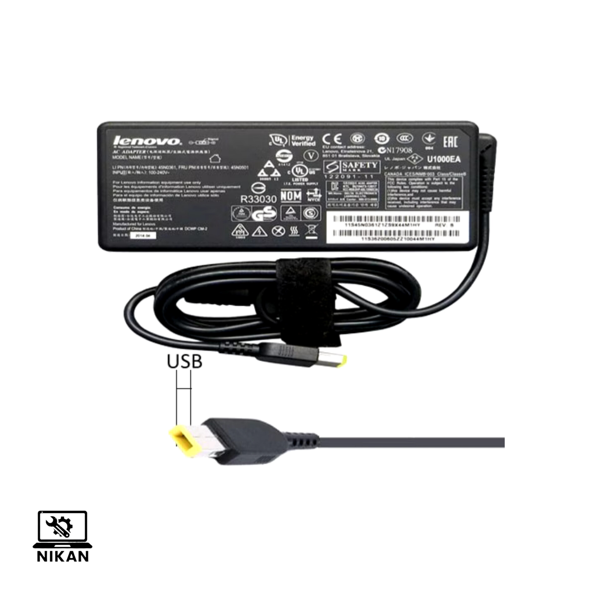 شارژر آداپتور لپ تاپ لنوو 90 وات 20V 4.5A | کابل برق سازگار با تمامی مدلهای Lenovo USB-C و Slim Tip (کانکتورهای رایج لنوو) | 90W Lenovo Laptop Charger Adapter 20V 4.5A USB-C Power Delivery AC Cable for All Lenovo Notebooks